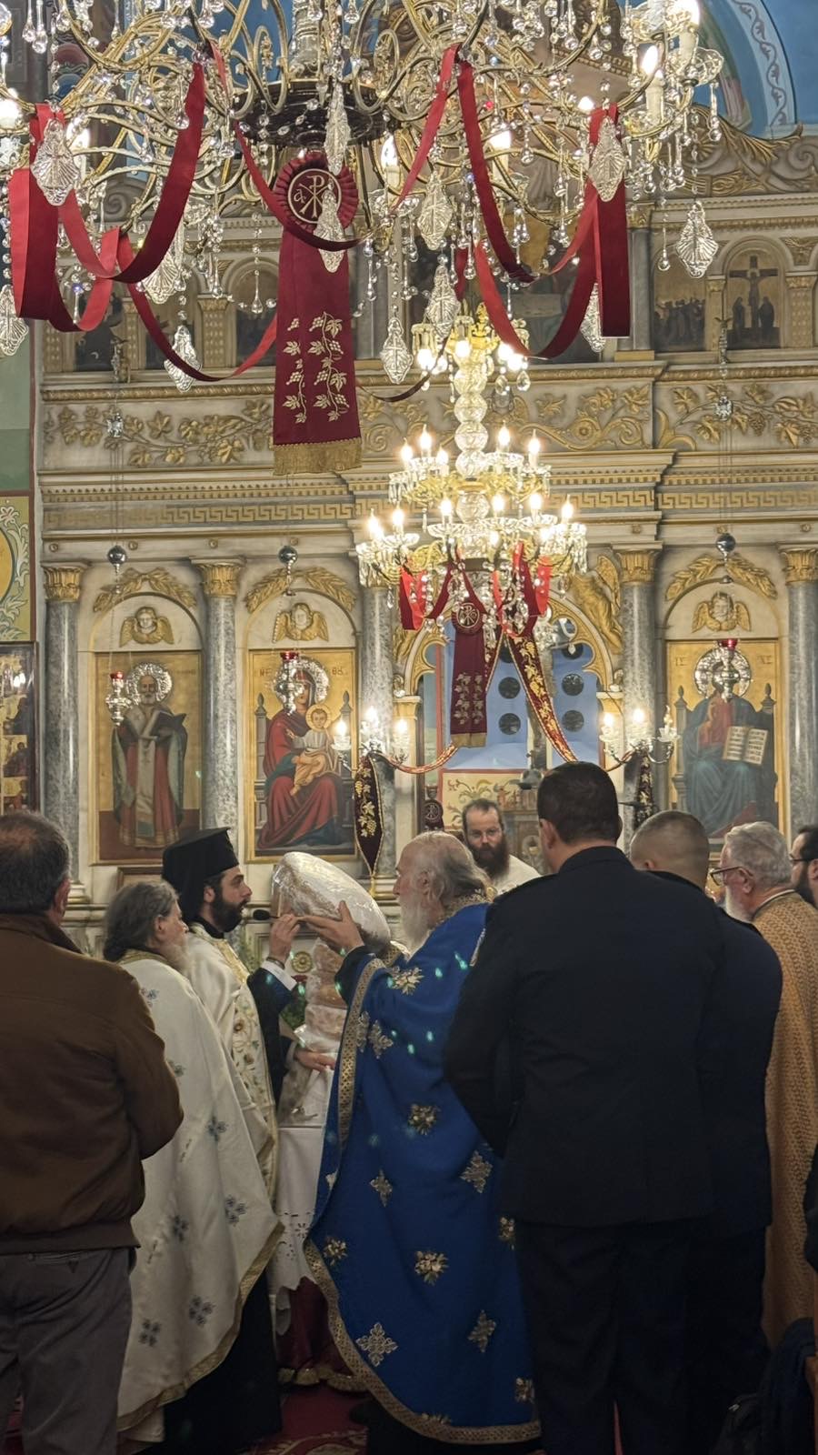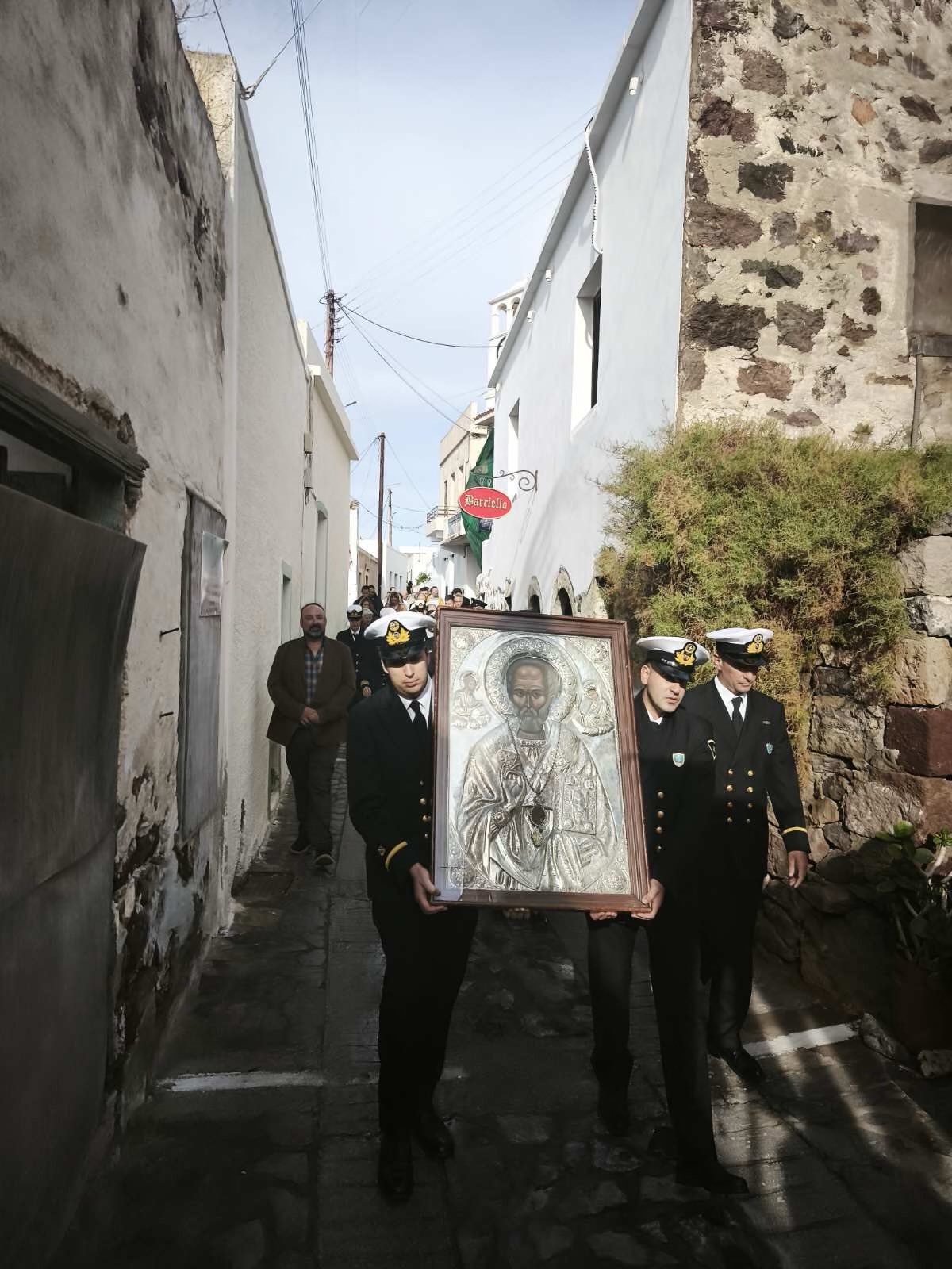 Με ιδιαίτερη λαμπρότητα, εκκλησιαστική τάξη και συγκίνηση εορτάστηκε και φέτος στον Ενοριακό Ιερό Ναό Αγίου Νικολάου Τρυπητής η μνήμη του εν Αγίοις Πατρός ημών Νικολάου, Αρχιεπισκόπου Μύρων της Λυκίας, προστάτου των θαλασσών και των ναυτικών. Των ιερών Ακολουθιών της παραμονής και της κυριωνύμου ημέρας προεξήρχε ο Πανοσιολογιώτατος Αρχιμανδρίτης π. Νεκτάριος Σώρρος, Αναπληρωτής Αρχιερατικός Επίτροπος Ιεράς Νήσου Μήλου, πλαισιωμένος από τους εφημερίους των ενοριακών ναών, Κοιμήσεως της Θεοτόκου Ζεφυρίας, Αρχίμ. Μεθόδιο Θηραίο, του Ιερού Μητροπολιτικού Ναού Μήλου Παναγίας Κορφιάτισσας, Αρχίμ. Χαράλαμπο Σαρακινό, από τον Ηγούμενο της Ιεράς Μονής Παμμεγίστου Ταξιάρχου Μιχαήλ Σερίφου, Αρχίμ, Ευδόκιμο Καραπαντελάκη, τον εφημέριο Αγίου Σπυρίδωνος Τριοβασάλου, Πρωτοπ. Σταύρο Ζούλια, τον εφημέριο Αγίας Παρασκευής Πολλωνίων Πρωτόπ. Μιχαήλ Παπαφακλή, τον εφημέριο Αγίου Γεωργίου Πέρα Τριοβασάλου, Πρωτοπ. Κωνσταντίνο Παπαϊωάννου, και τον εφημέριο Κοιμήσεως της Θεοτόκου Αδάμαντος, Πρωτοπ. Αντώνιο Σώρρο.» και πλήθος ευσεβών χριστιανών.