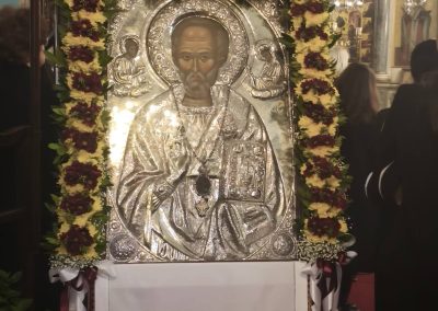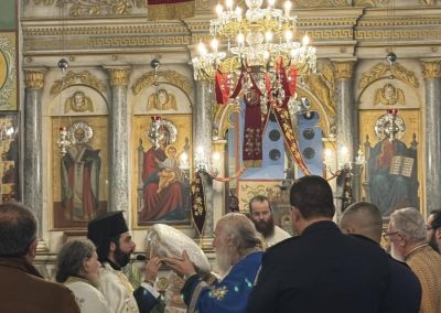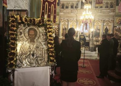 Στο κήρυγμα της παραμονής ο Πανοσιολογιώτατος π. Νεκτάριος παρουσίασε τη μορφή του Αγίου Νικολάου ως επισκόπου αγάπης και δικαιοσύνης, που δεν έζησε για τον εαυτό του, αλλά για τον πονεμένο άνθρωπο. Με αφετηρία παραδείγματα από την Παλαιά Διαθήκη (Αβραάμ, Ιωσήφ, Μωυσή, Δανιήλ) ανέδειξε τον Θεό ως προστάτη του «μικροῦ λαοῦ» που πορεύεται μέσα από δοκιμασίες, συνδέοντας τη ζωή του Αγίου με τη ναυτική και εκκλησιαστική παράδοση του τόπου μας και του Γένους.